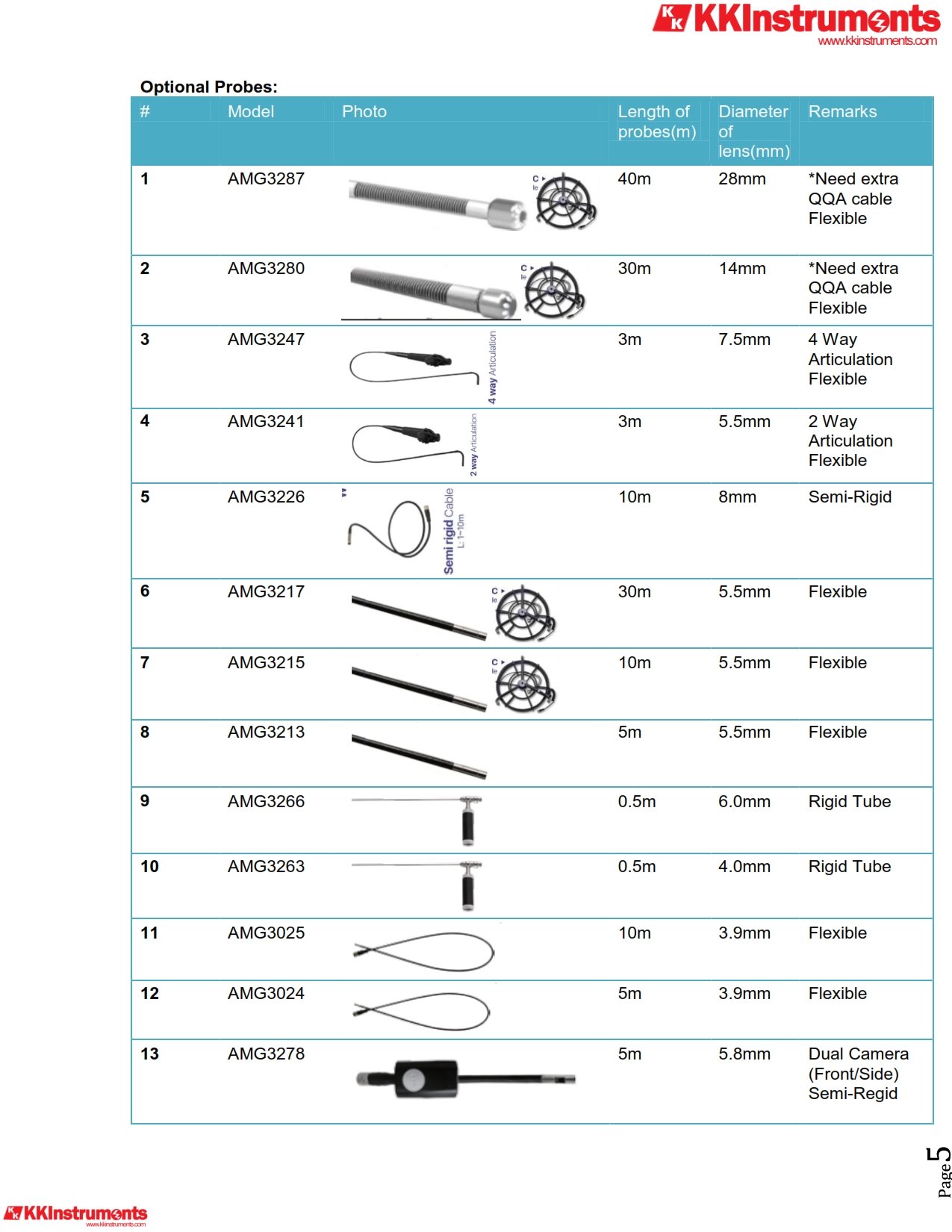 With optional accessories of 3.9 mm, 5.5mm, 8mm, 10mm, 25mm, .... diameter camera probe, it can be used to check petroleum & diesel engines, cylinder, transmission system, breaking system, suspension systems, air conditioning systems, piping/plumbing system inspection.