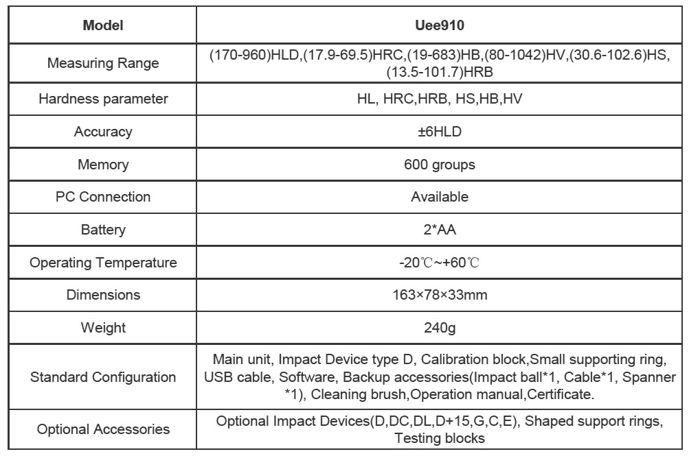 ●Direct calibrate on HL,HRC,HB, and freely switch to 6 different hardness scales