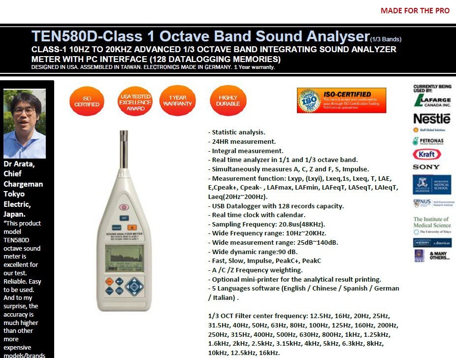 TEN580D-Class 1 Octave Band Sound Analyser(1/3 Bands)