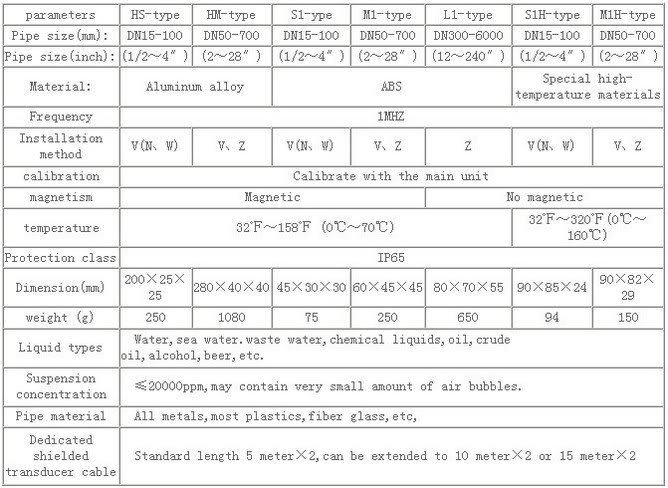 - It comes with S1H transdcuer (DN15-100mm) and NEW M1H transducer (DN50-700mm); 5m*2 signal cable;metal clamp fixture; one aluminium case; tape ruler;adaptor; data line