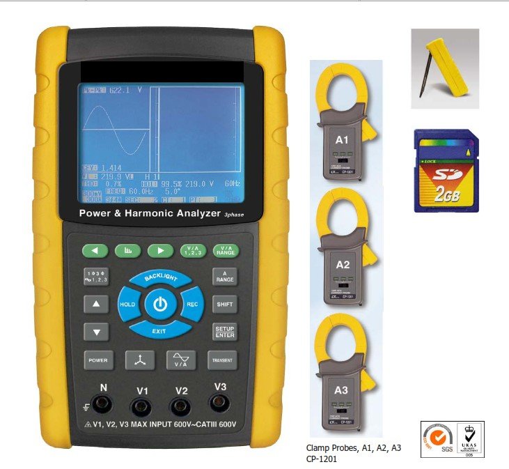 LUT0298-COMPLETE ADVANCED SD CARD GRAPHICAL/ WAVEFORM DATALOGGING 3-PHASE POWER & HARMONICS ANALYSER W 3 X 1200A CLAMP
