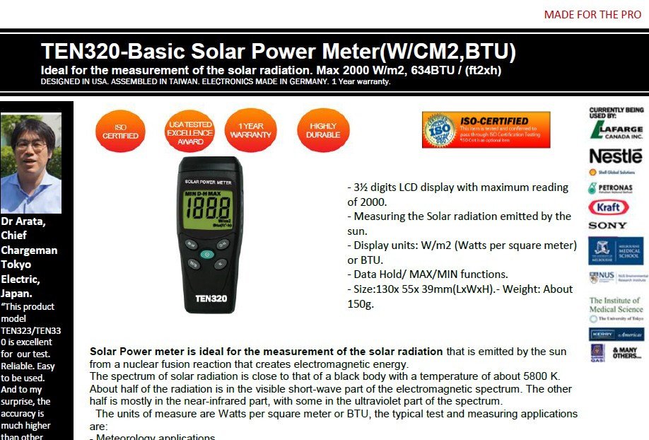 TEN320-TEN320-Basic Solar Power Meter(W/CM2,BTU)
