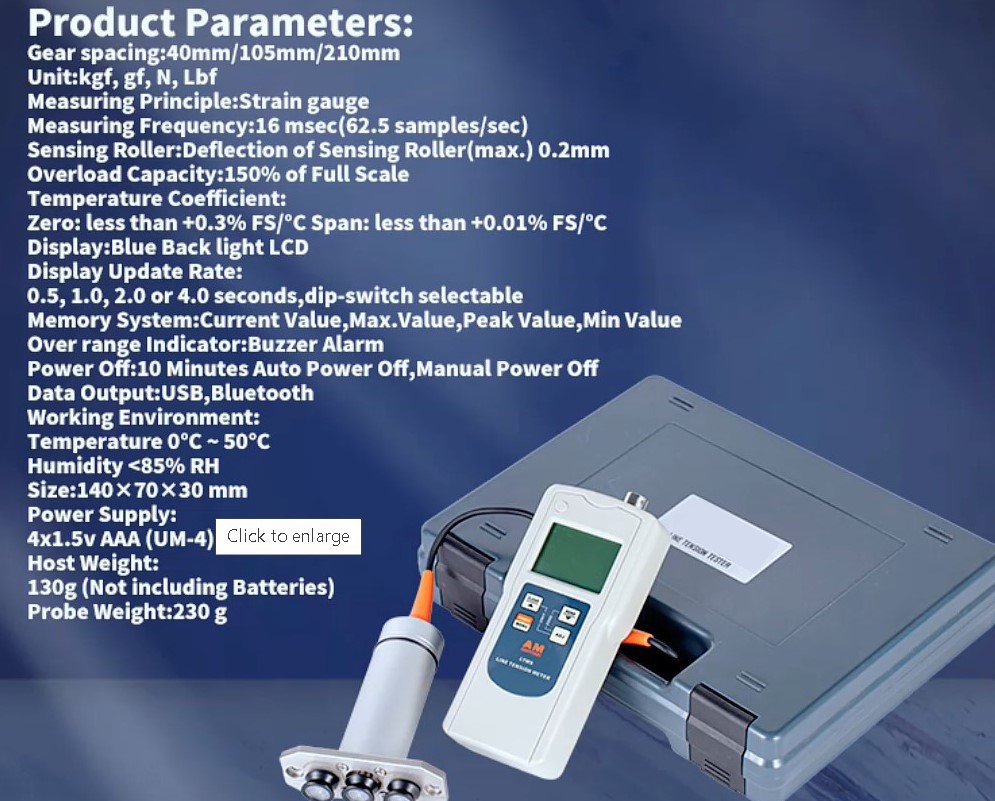 The LTMS Digital Tension Meter is a hand-held device which accurately measures the running as well as static tensions of a wide variety of process materials including yarns, fibers, wires, optical fibers, etc.
