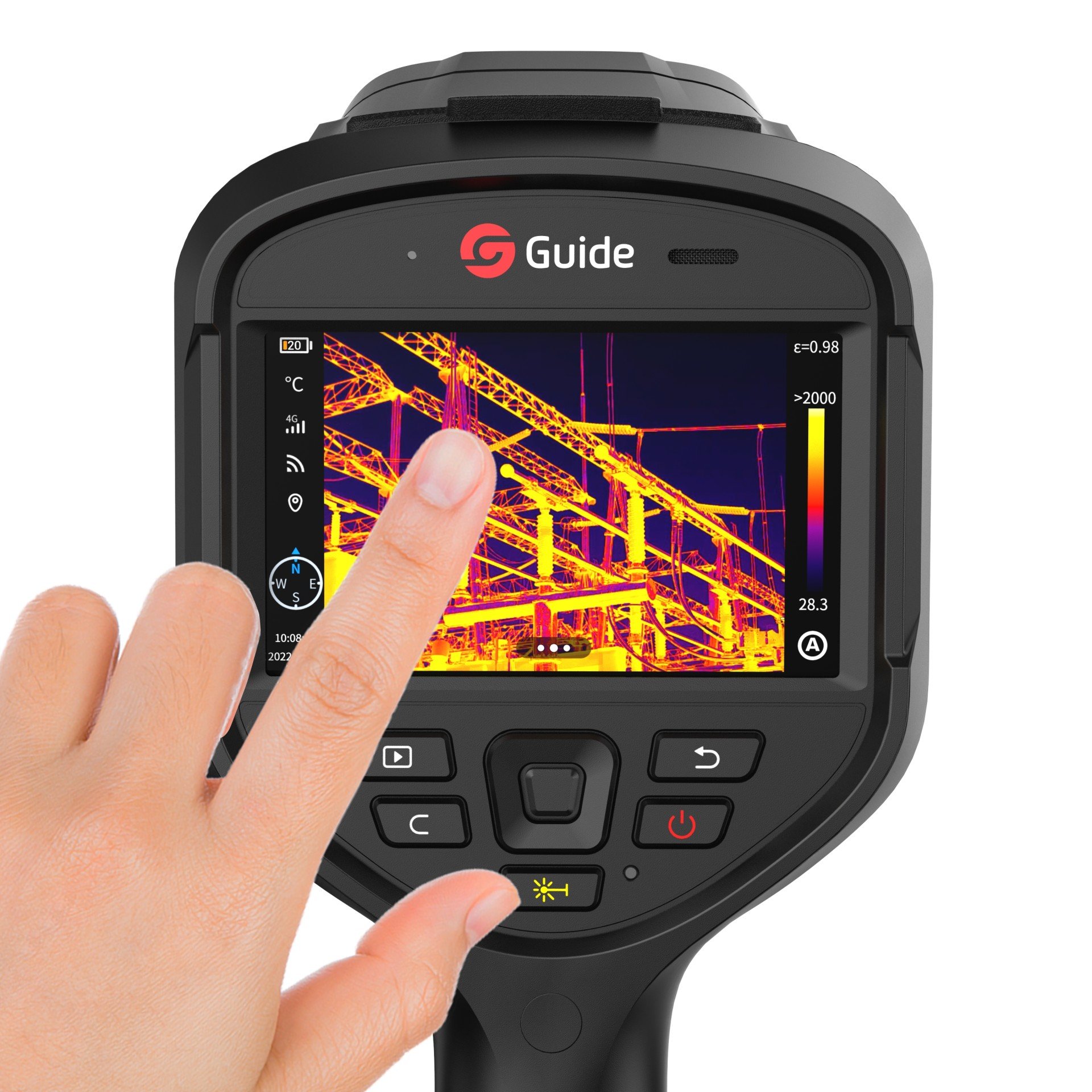 The Guide IR H3+ thermal camera from the Hammer series can measure temperature in the range of -40 °C - 650°C. An optional higher temperature measurement range of up to 2000 °C is possible with a protective high temperature lens (not included).