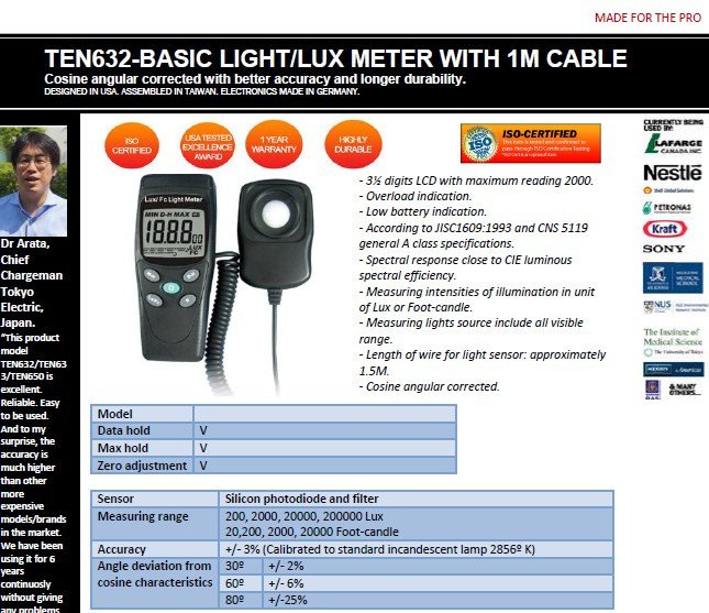 TEN632-Economical Lux meter with 1m cord connection cable